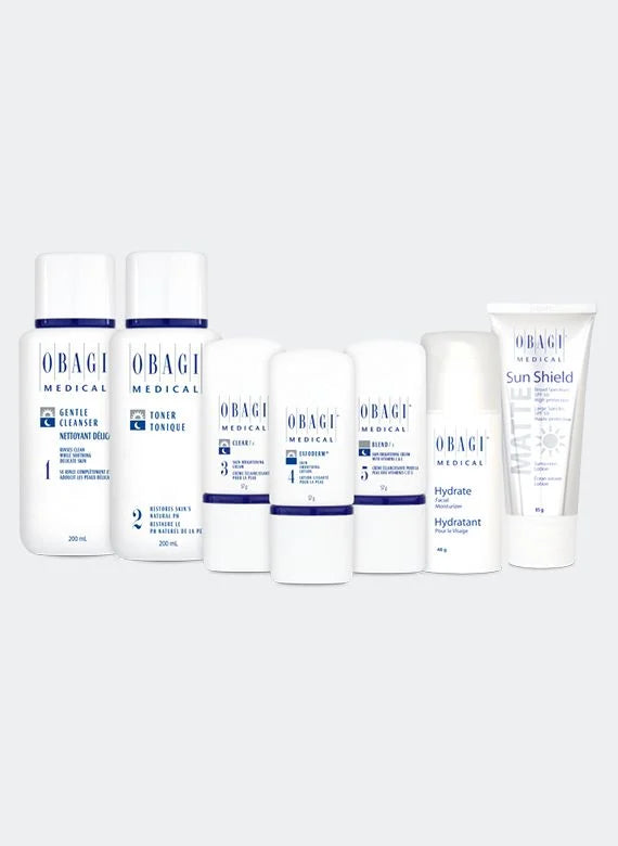 A system that has been formulated to rejuvenate and transform the skin by significantly reducing fine lines and sun related laxity for a healthier looking appearance. In conjunction with treatments for hyperpigmentation while preparing the skin to take on the uniquely formulated active ingredients.